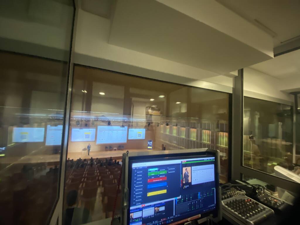 Naszym zadaniem było kompleksowe zapewnienie obsługi technicznej wydarzenia. Odpowiadaliśmy za realizację transmisji na żywo, wykorzystując dwa niezależne tory kamerowe, co pozwoliło na dynamiczne i profesjonalne pokazanie przebiegu konferencji. Dzięki temu odbiorcy mogli śledzić zarówno prezentacje, jak i reakcje publiczności, co znacząco wpłynęło na jakość odbioru całego wydarzenia.